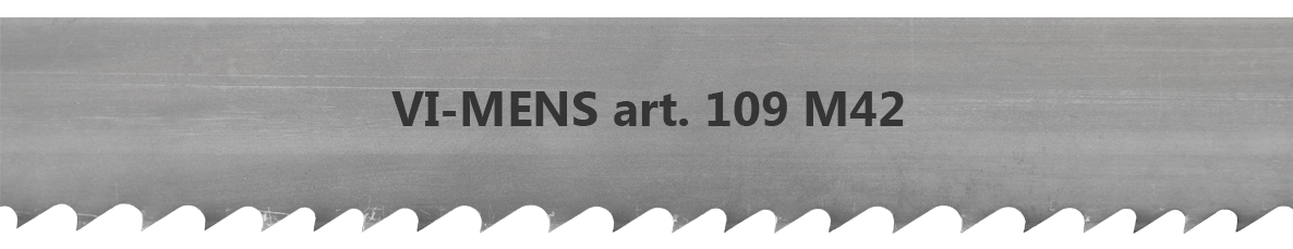 VI-MENS art. 109 M42 – высококачественное биметаллическое ленточное полотно, предназначенное для резки заготовок сплошного сечения и толстостенных труб (отношение наружного диаметра к толщине стенки от 3 до 12).