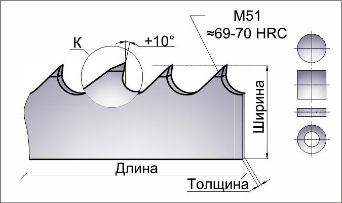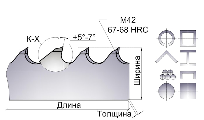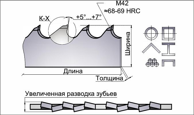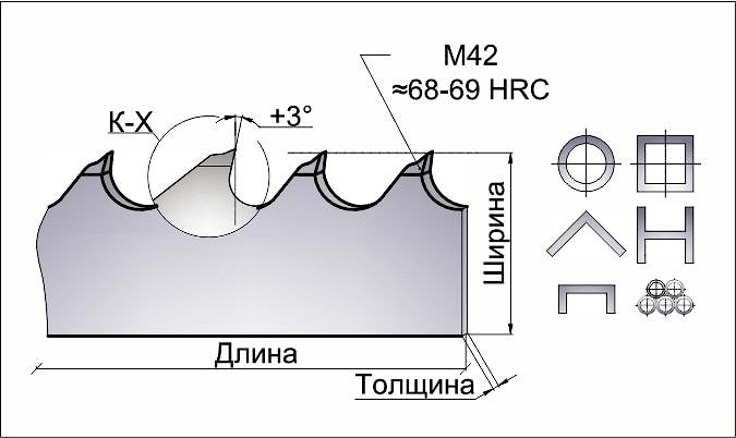 Универсальное биметаллическое ленточное полотно, предназначенное для резки профильных заготовок и заготовок сплошного сечения.