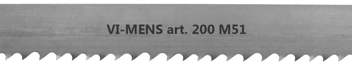 VI-MENS art. 200 M51 – биметаллическое ленточное полотно, предназначенное для резки заготовок сплошного сечения и толстостенных труб (отношение наружного диаметра к толщине стенки от 3 до 12) из средне- и труднообрабатываемых материалов.