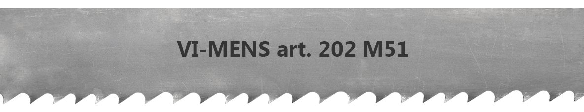 VI-MENS art. 202 M51 – биметаллическое ленточное полотно, предназначенное для резки заготовок сплошного сечения и толстостенных труб (отношение наружного диаметра к толщине стенки от 3 до 12) из средне- и труднообрабатываемых материалов.