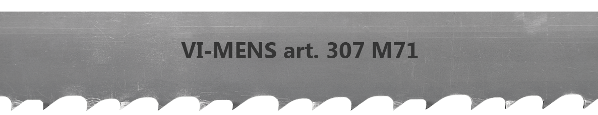 VI-MENS art. 307 M71 – высокопроизводительно биметаллическое ленточное полотно, предназначенное для резки заготовок сплошного сечения и толстостенных труб (отношение наружного диаметра к толщине стенки от 3 до 12) из средне- и труднообрабатываемых материалов.