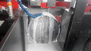 5. Труднодоступность СОЖ при резании крупногабаритных заготовок. Данная проблема характерна не только для никелевых сплавов, однако именно для них оказываемое влияние наиболее критично. Это связано, как мы упоминали ранее, с низкой теплопроводностью материала, что требует хорошего охлаждения в зоне резания. В связи с этим количество СОЖ, подаваемого в пропил должно быть максимально возможным. При этом концентрация должна быть >15%. Высокая концентрация кроме охлаждающих и смазывающих свойств обладает лучшей налипаемостью на поверхности пилы, что заносит эмульсию в канал пропила.