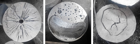 Внутренние дефекты слитков могут быть в виде различной формы пор и пустот. Их наличие не существенно сказывается на стойкость режущего инструмента. Однако отрезка усадочной раковины слитка может иметь трудности, связанные с неоднородностью материала и ухудшением его обрабатываемости.
